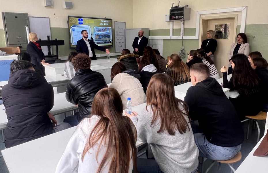 The University of Skopje team held the first presentation at the Georgi Dimitrov Secondary School, where high school graduates were introduced to the study programs, enrollment requirements, and opportunities offered by the University of Skopje.