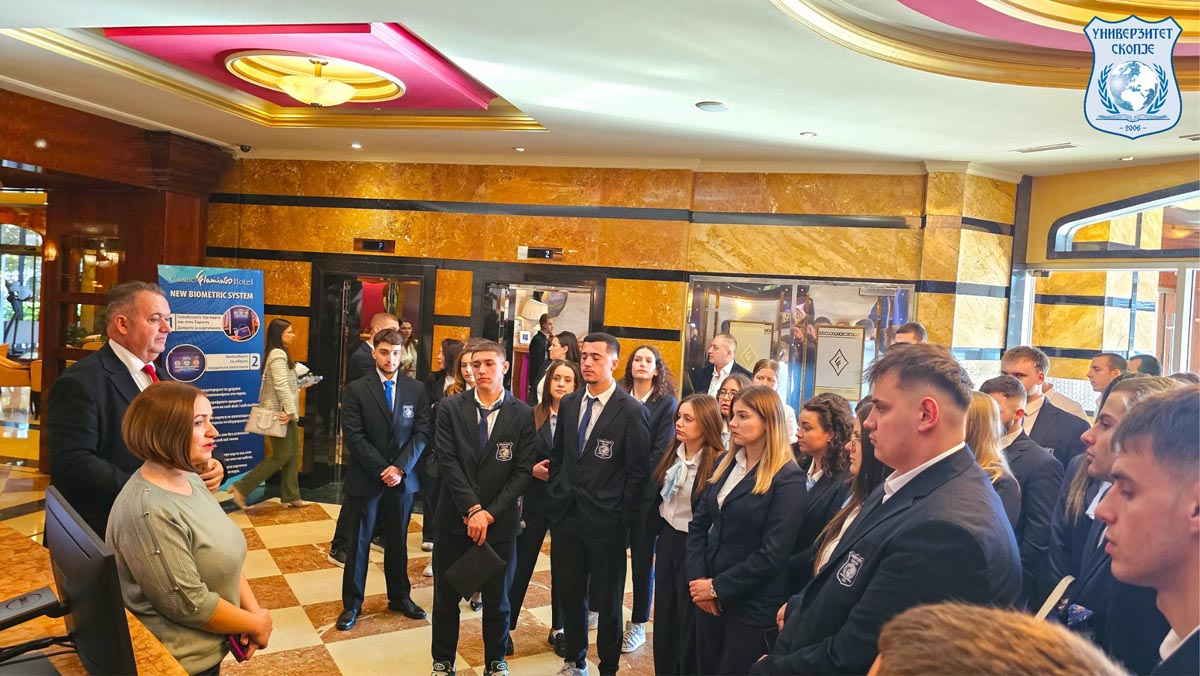 Како вовед во практичниот дел од програмата, групата најпрво го посети хотел казиното „Фламинго“ на граничниот премин Богородица. Таму студентите се запознаа со функционирањето, организацијата на работните процеси и стандардите на работа во еден од најуспешните и најпрофитабилни хотели во Македонија.