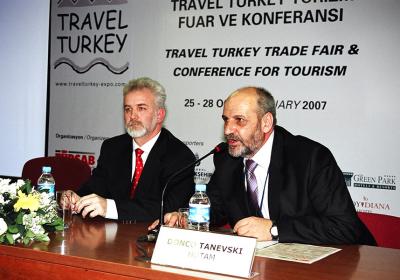 Деканот Миленковски и претседателот на ХОТАМ Дончо Таневски, учесници на Конференција за туризам на саемот за туризам во Истанбул, Турција (25.01.2007)