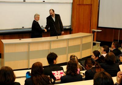 Во рамките на посетата на студентите од првата и втората генерација на ФТС, на Универзитетот во Нови Сад ги поздрави Директорот на Департманот за географија, туризам и хотелиерство, проф. д-р Јован Плавша (12.10.2007)