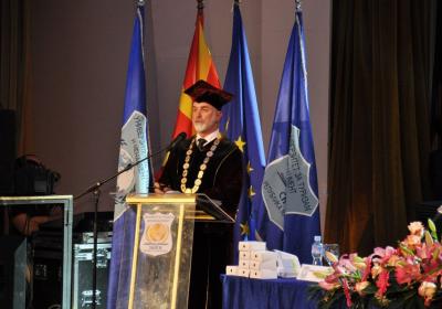Обраќање на Ректорот Миленковски пред присутните на свечената промоција на дипломирани студенти