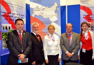 Ректорот на УТМС, проф. д-р Аце Миленковски заедно со Деканот на Факултетот за туризам доц. д-р Сашко Граматниковски и Љупчо Наќев, новинар на Радио Слободна Европа на меѓународниот саем за туризам во Мадрид