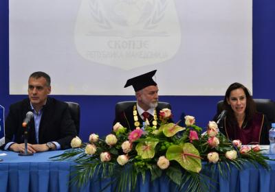 Ректорот на УТМС проф.д-р Аце Миленковски му додели посебна благодарница на Хозе Ривера, експерт по односи со јавноста и заменик Генерален директор на ПР Агенцијата “Кетчум“