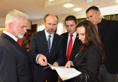 Високите преставници од UNWTO, придружувани од претставниците на УТМС, со Градоначалникот на Град Скопје