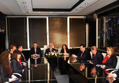 Високите преставници од UNWTO, придружувани од претставниците на УТМС, во посета на Градоначалникот на Град Скопје