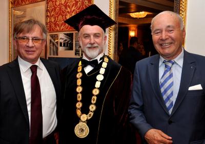Ректорот на УТМС со дел од гостите на свечената промоција за доделување на дипломи, Македонски народен театар, 08.10.2016