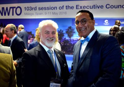 Со Наџиб Балала државен секретар за туризам на Кенија на седницата на Извршниот совет на UNWTO во Малага, Шпанија, 10.05.2016