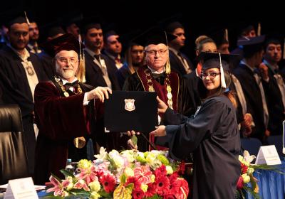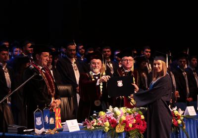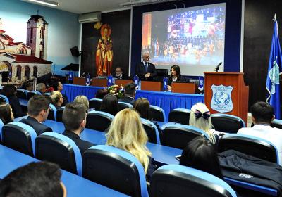Првиот свечен час за студентите од прва година на УТМС, Ректорот Миленковски го започна со дел свечената промоција на дипломците, 18.09.2017