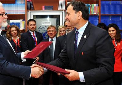 Ректорите на двата универзитета си честитаа за потпишувањето на договорот за соработка, УТМС, 25.10.2017