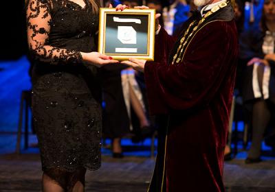 За особен придонес за развој на универзитетот признание доби раководителот на универзитетската библиотека м-р Јулијана Петровска, Македонска опера и балет, 26.11.2017