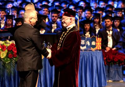 Согласно високиот протокол на УТМС, почесна титула доктор honoris causa на г-дин Јован Грков, сопственик и генерален менаџер на „Урбан Инвест”, Македонска опера и балет, 26.11.2017