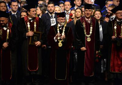 Ректорот, проф. д-р Аце Миленковски со деканите на факултетите на УТМС на свечената промоција на дипломци и магистри, Македонска опера и балет, 26.11.2017