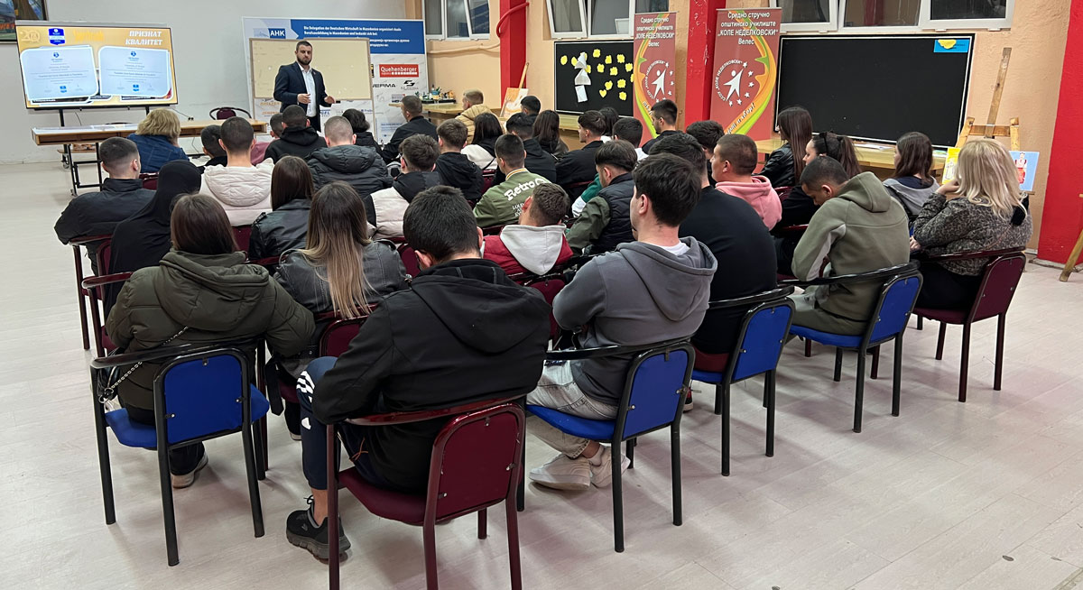 Тимот на Универзитет Скопје го посети УЗУС „Коле Неделковски“ во Велес, каде што пред матурантите беа презентирани студиските насоки и кариерните можности што ги нуди УТМС. Преку динамична презентација, учениците се запознаа со современиот пристап во наставата, практичната работа и поддршката што ја добиваат студентите од академскиот кадар. Посетата беше проследена со активна дискусија, при што учениците покажаа голем интерес за нивното понатамошно образование.