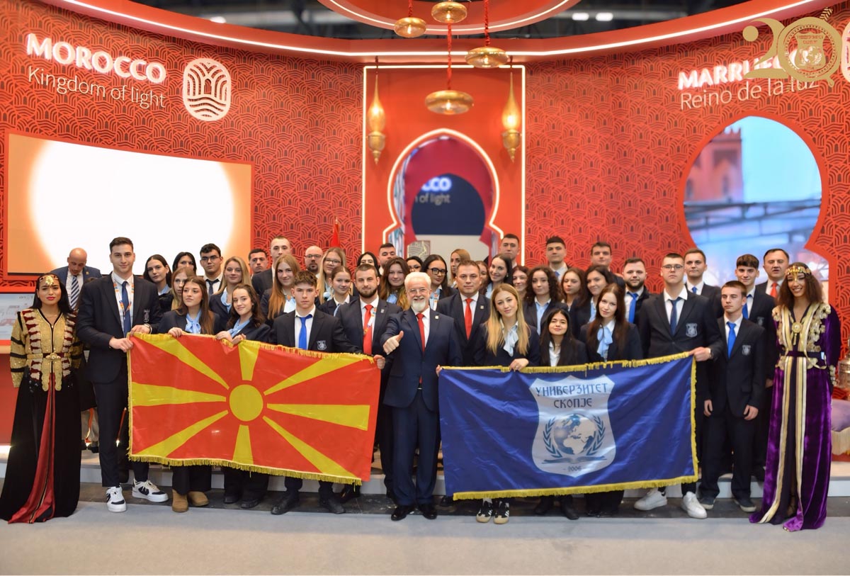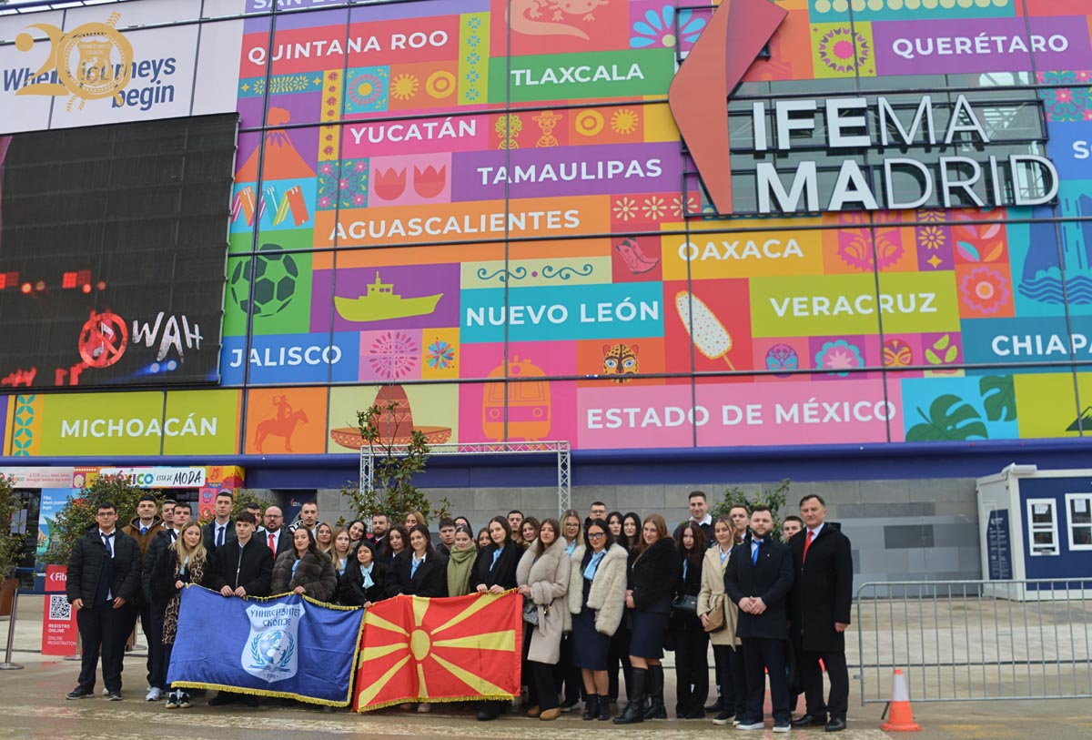 Ректорот на Универзитет Скопје проф. д-р Аце Миленковски, професорите и студентите, во рамки на активностите на престижниот Меѓународен саем за туризам „FITUR "во Мадрид, го посетија и штандот на нашата Република Македонија. Посетата беше збогатена со присуството на Министерот за култура и туризам Зоран Љутков, со кого студентите имаа можност да поразговараат за промоцијата на македонската култура, туризам и културно наследство на меѓународна сцена. Ова искуство претставува значаен поттик за младите академци и уште една потврда за важноста на поврзувањето на образованието со реалните културни и туристички практики.