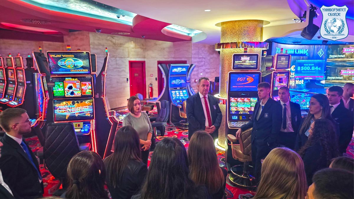 Како вовед во практичниот дел од програмата, групата најпрво го посети хотел казиното „Фламинго“ на граничниот премин Богородица. Таму студентите се запознаа со функционирањето, организацијата на работните процеси и стандардите на работа во еден од најуспешните и најпрофитабилни хотели во Македонија.